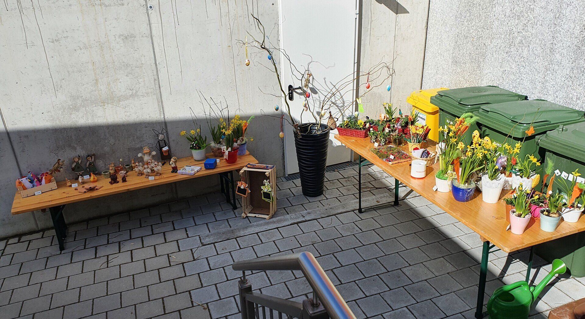 Wir veranstalten, mit Unterstützung des Elternbeirats, einen Osterverkauf. Wir verkaufen: Ostergestecke mit, von den Kindern gebastelten, Ostermotiven, bemalte Ostereier, Osterkränze ect. Die Kinder waren in den letzten Tagen fleißig, so dass viele schöne Sachen zusammengekommen sind.
