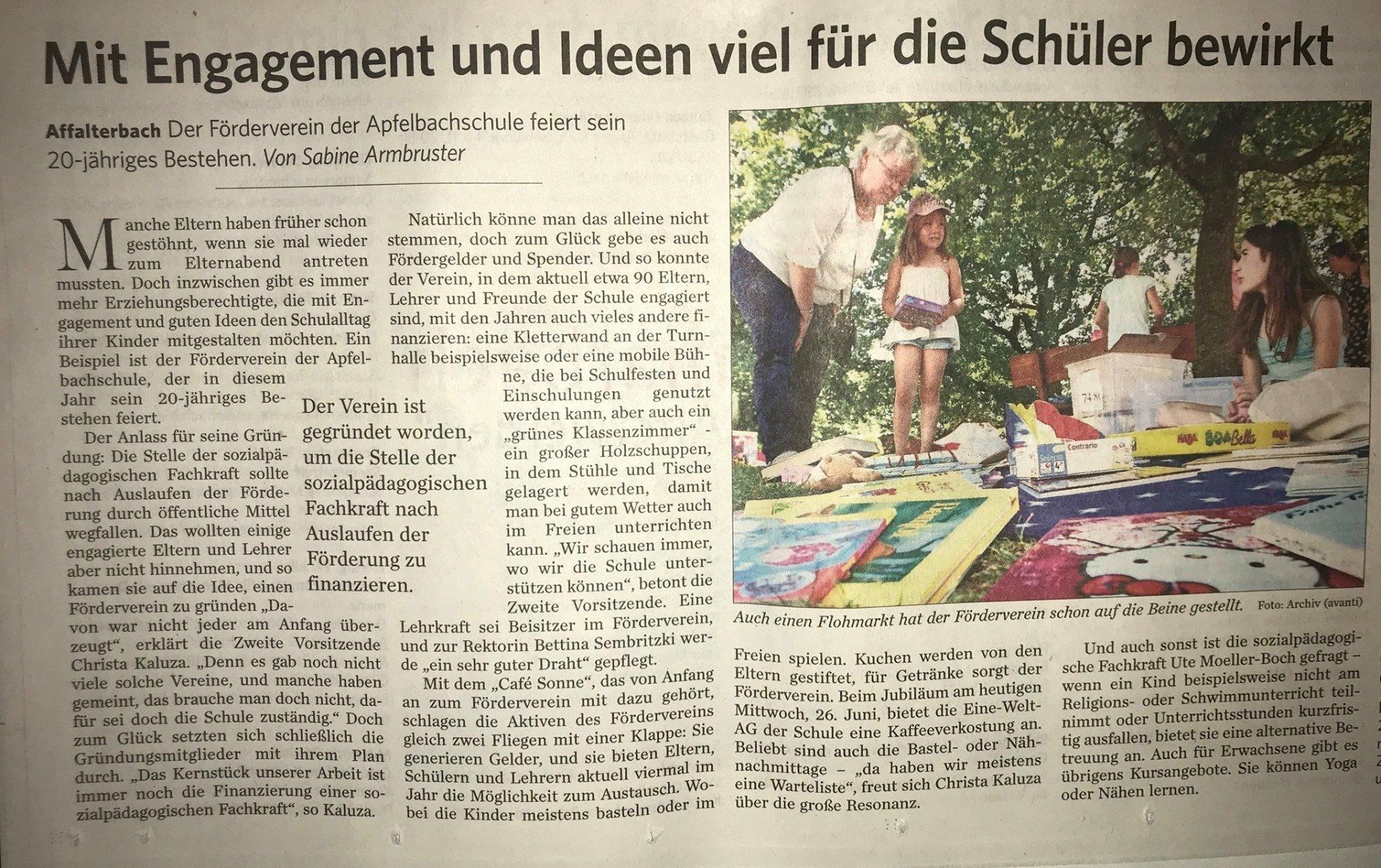 20 Jahre Förderverein der Apfelbachschule e. V.!