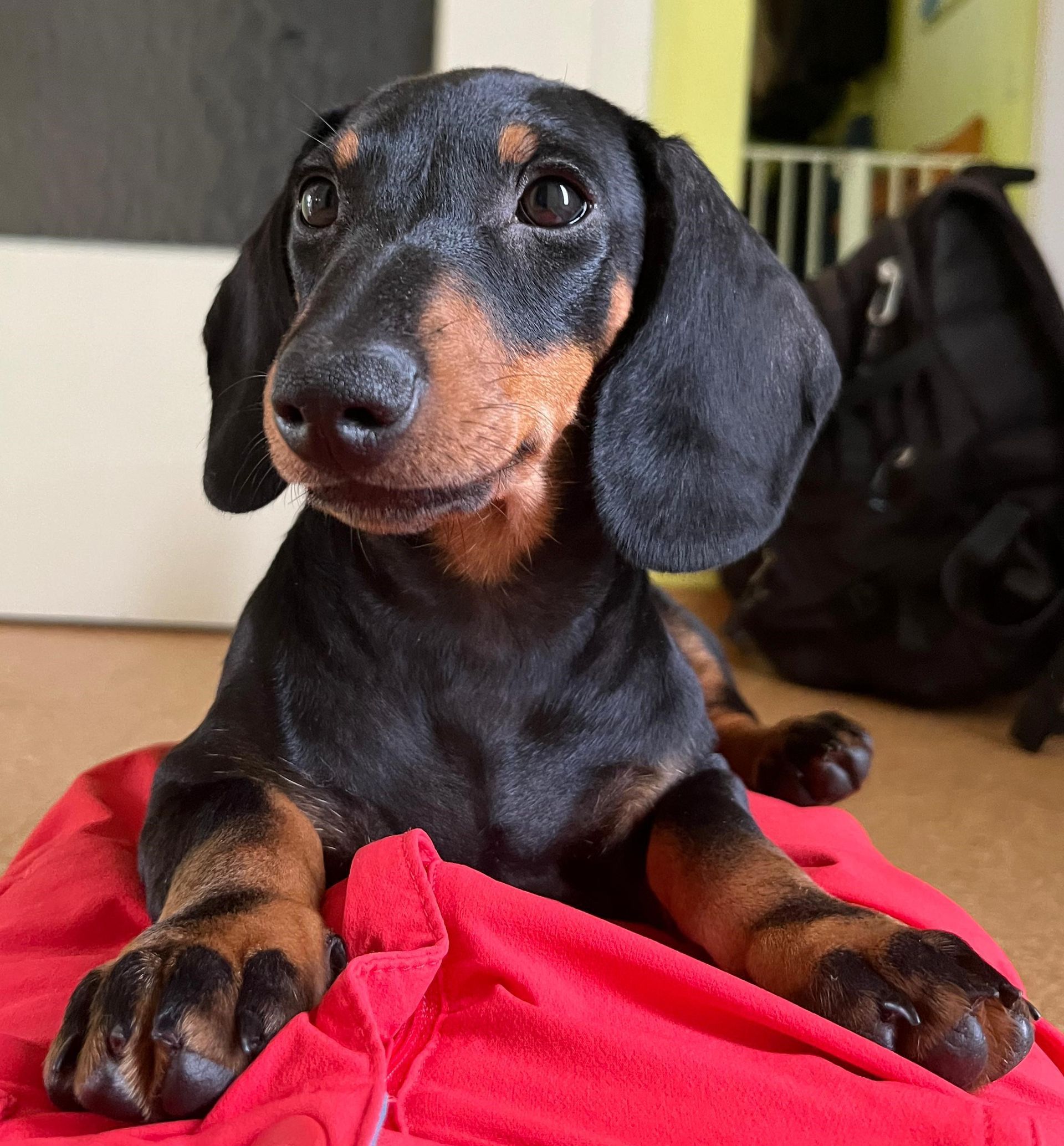 Das Kollegium der Apfelbachschule bekommt ein neues Mitglied: Lilu vom Wiesengrund - 4 Beine, Schlappohren, langer Körper, … Richtig, Lilu ist ein Dackelmädchen! Ein sehr süßes Dackelmädchen sogar. Lilu ist im Juli 2022, im Alter von 4 Monaten, bei Carolin Forster eingezogen. Sie ist sehr lieb und bellt kaum. Schnell war klar, Lilu soll Schulhund werden. „Sie geht auf alle Menschen freundlich zu, insbesondere Menschen mit Einschränkung mag sie sehr. Sie scheint das zu spüren.“ erzählt Frau Forster.